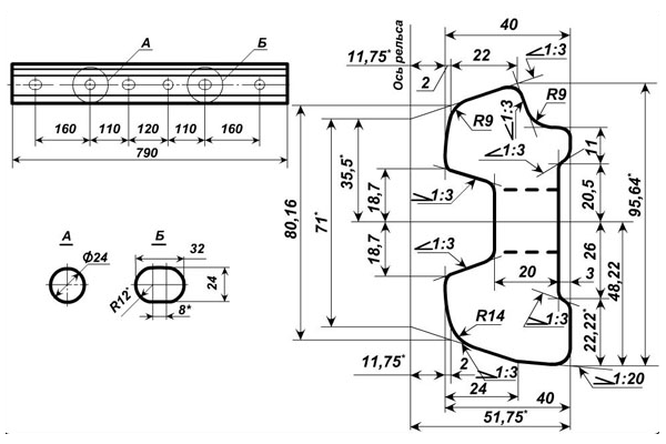 Предназначена для соединения рельсов типа P-43 в зоне стыка. Накладки имеют шесть крепежных отверстий (три отверстия d-24 мм и три отверстия 32х24 мм под Болт стыковой М22х135.), вследствии чего, обеспечивается надежное закрепление рельсов.