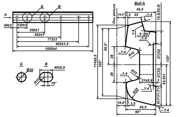| Накладки 1Р-65 устанавливаются на внешней и внутренней стороне шейки рельсов в точке стыка и закрепляются стыковыми болтами М27х160. |
