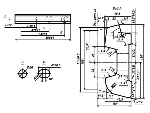 Предназначена для соединения рельсов типа P-65 в зоне стыка. Накладки имеют четыре крепежных отверстий (два отверстия d-30 мм и два отверстия 40х30 мм под Болт стыковой М27х160.), вследствии чего, обеспечивается надежное закрепление рельсов.