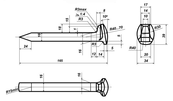 Костыль путевой 16х16х165 необходим для крепления железнодорожных рельсов марок Р-43, Р-50 и Р-65.